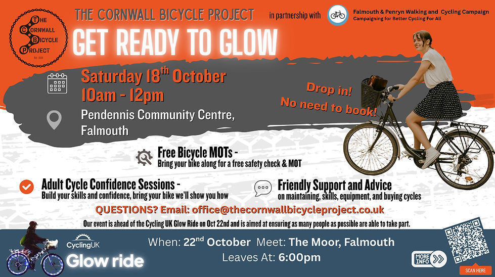 We provide inclusive cycling lessons, courses and events in Cornwall. Including regular social rides, educational programmes for all ages: Bikeability, Balanceability, Learn to Ride; Confidence / skills booster sessions, Mountain Biking, Race Events as well as Cycle MOTs and Learn to Fix Sessions.